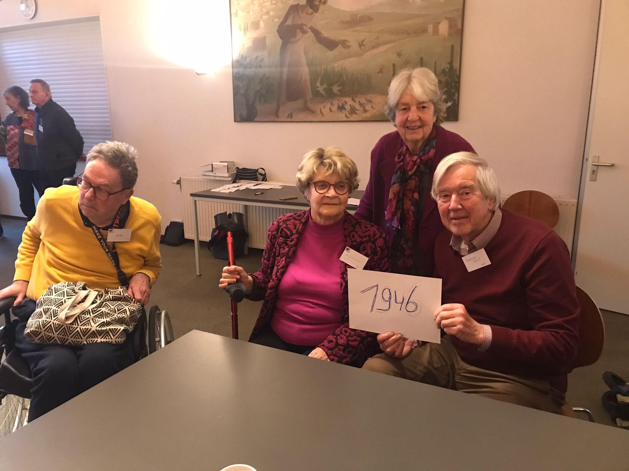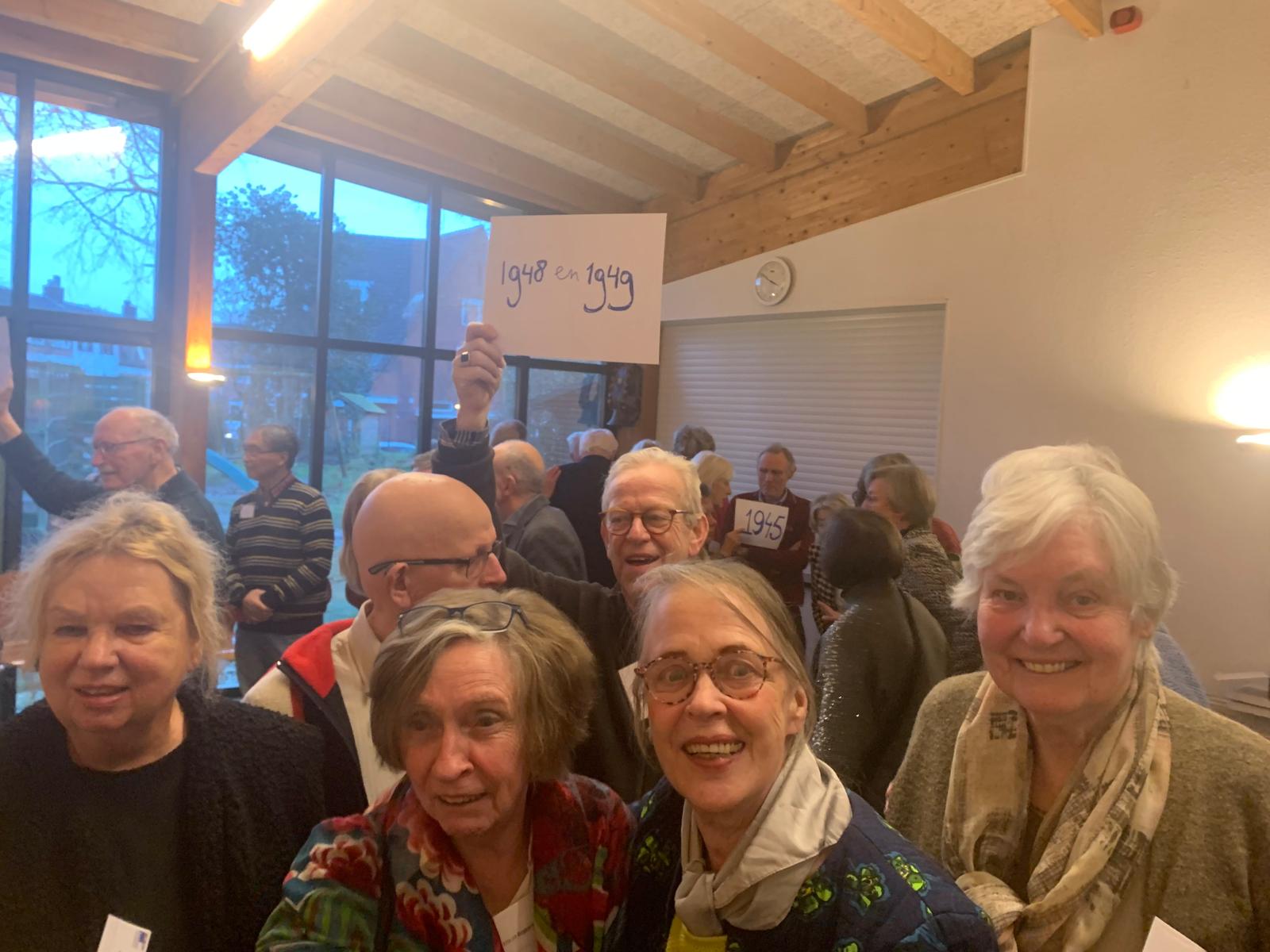 Nieuwjaar 2025 – bij welk jaar hoor je Op de nieuwjaarsbijeenkomst van 8 januari deden we een soort spel waarbij je de mensen uit hetzelfde geboortejaar moest opzoeken, om de bar open te krijgen. Dat lukte goed. Klik op de afbeelding voor een groter beeld.